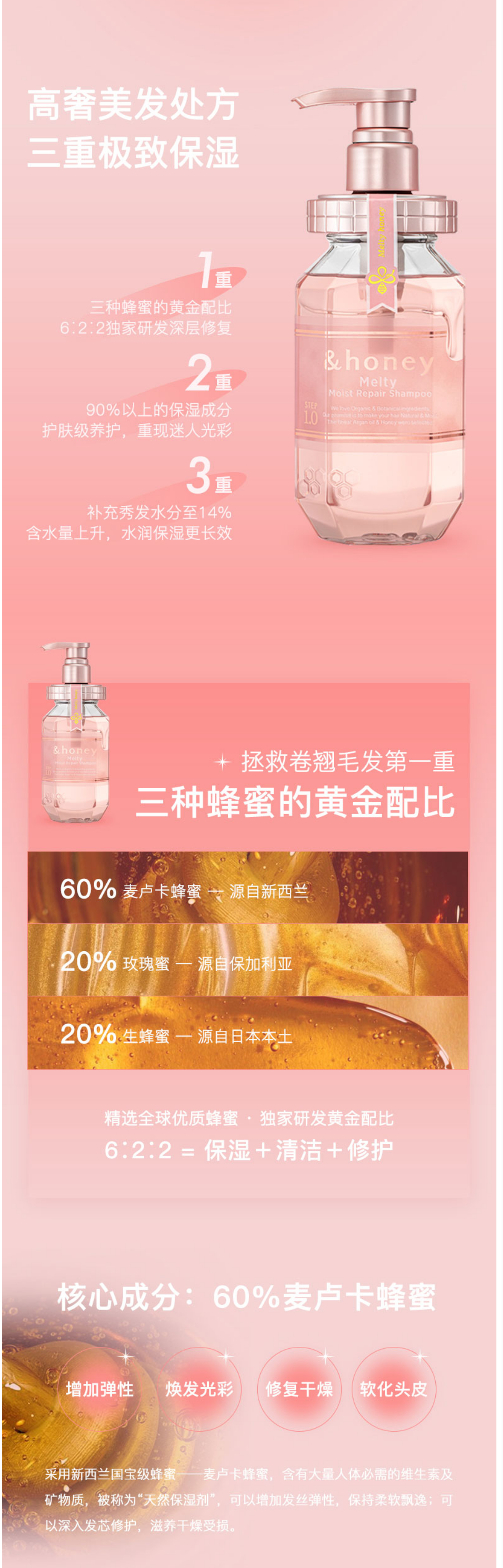 优品|日本&honey安蒂花子洗发水蜂蜜护发素 440ml 多款选