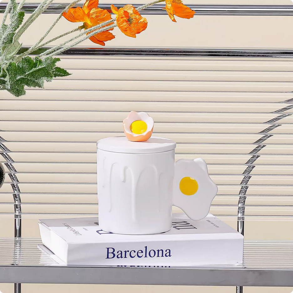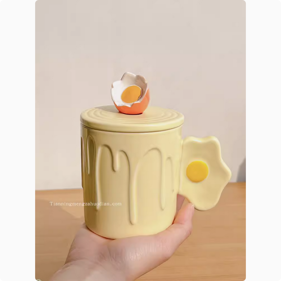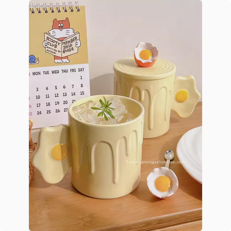 优品【杯+盖+勺】莫兰迪个性简约鸡蛋浮雕带盖勺子