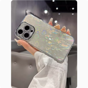 带闪粉镜头镭射爱心贝壳纹白色 手机壳(iPhone17/16/Plus/Pro/Max)