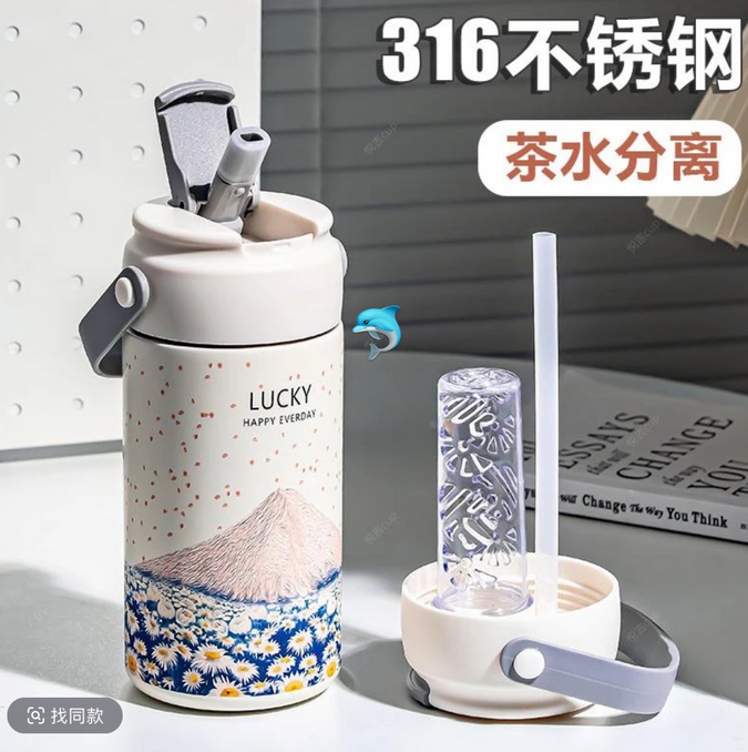百货小铺|奥氏体不锈钢手提花茶杯750ml 多款选
