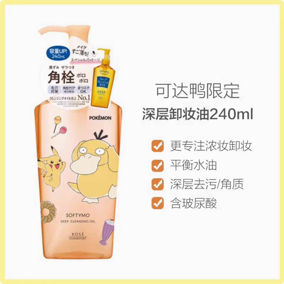 東京商城|日本kose高丝softymo限定宝可梦温和保湿清爽深层清洁毛穴卸妆油 230ml