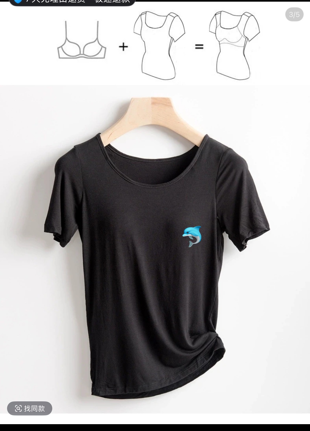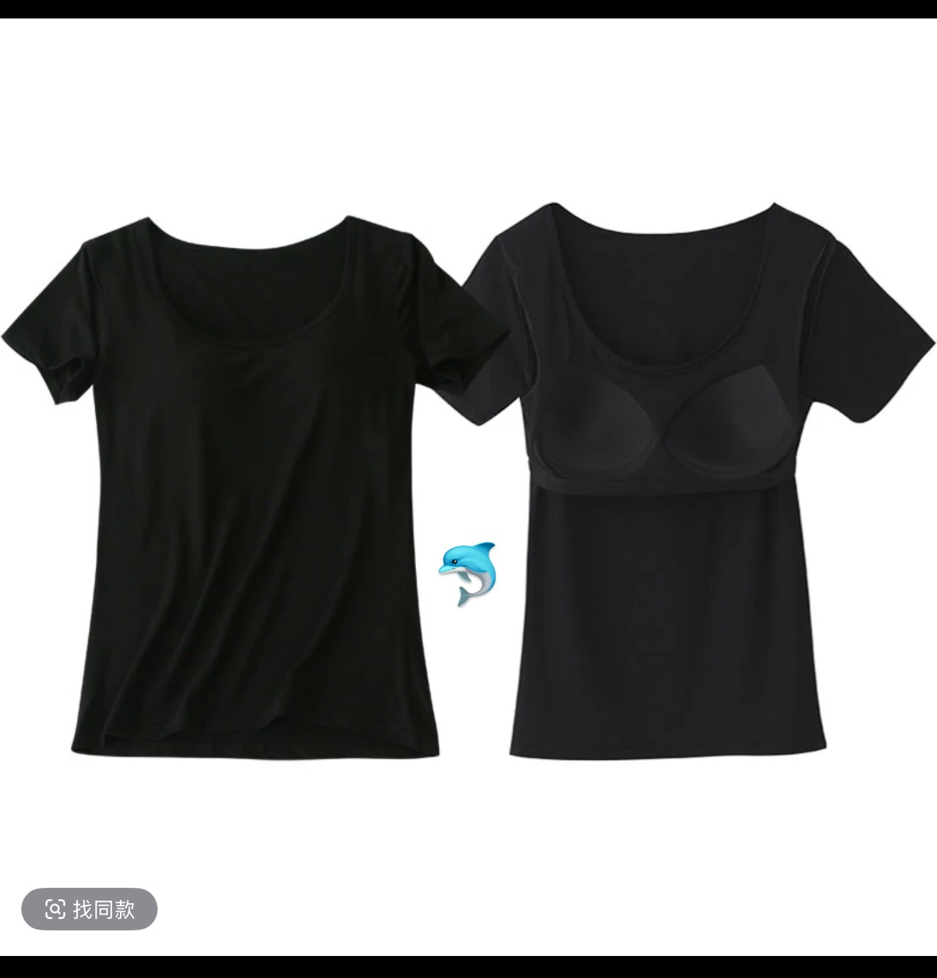 百货小胖【2件入】冰丝瑜伽半袖带文胸上衣