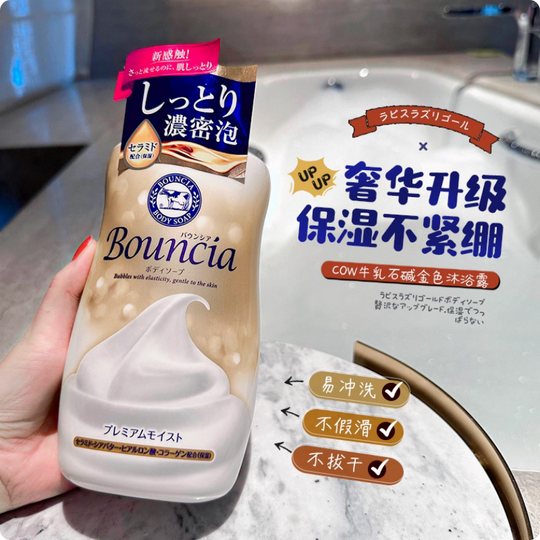 日本 BOUNCIA 牛乳石鹸泡沫沐浴露 金色奢华牛乳 铃兰花香460ml