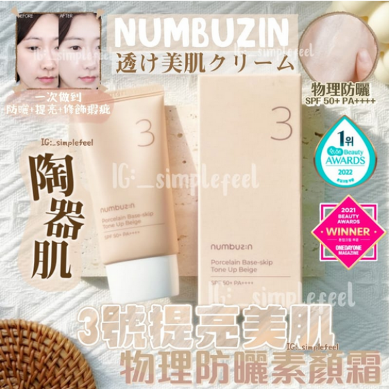 K【粉底+防晒】numbuzin数字素颜霜50ml SPF50+pa++++
