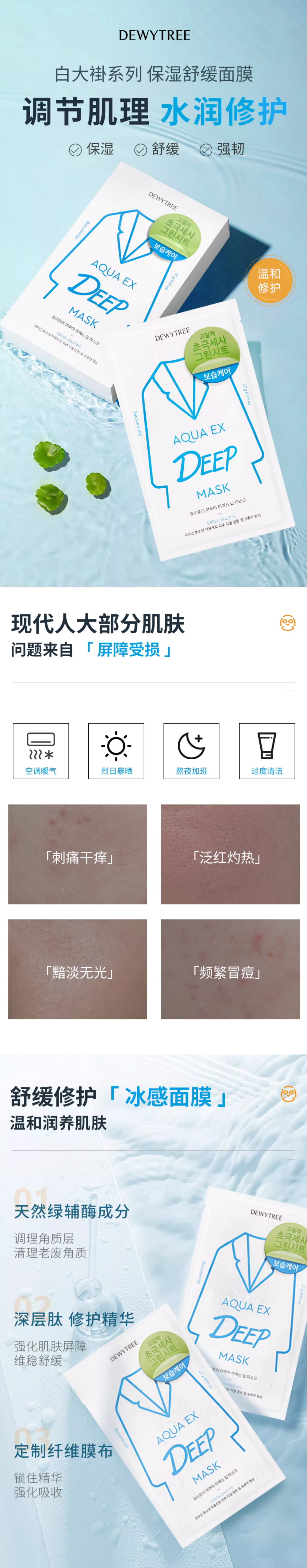 K|DEWYTREE自颜源露白大褂酵素面膜保湿补水绿色面膜10片