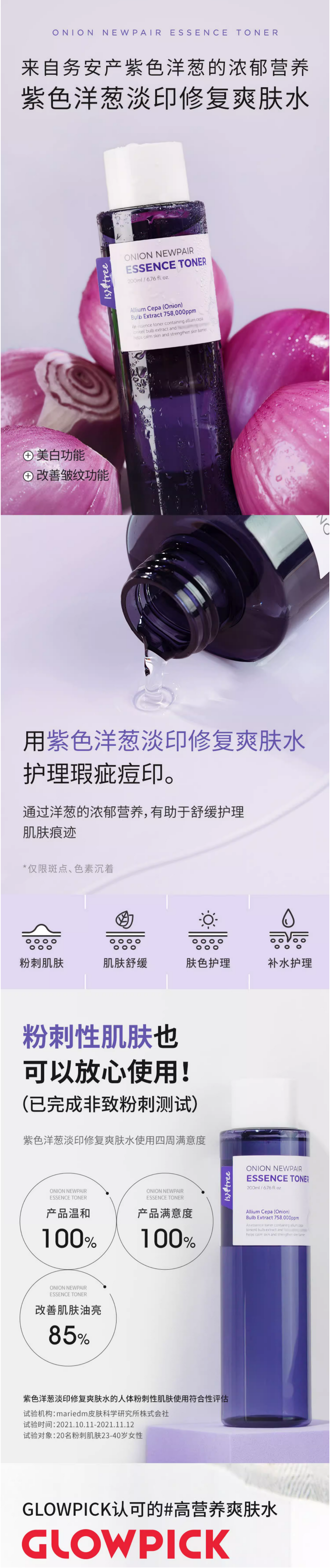 K|韩国isntree紫色洋葱修复爽肤水200ml 护理遮瑕淡化痘印