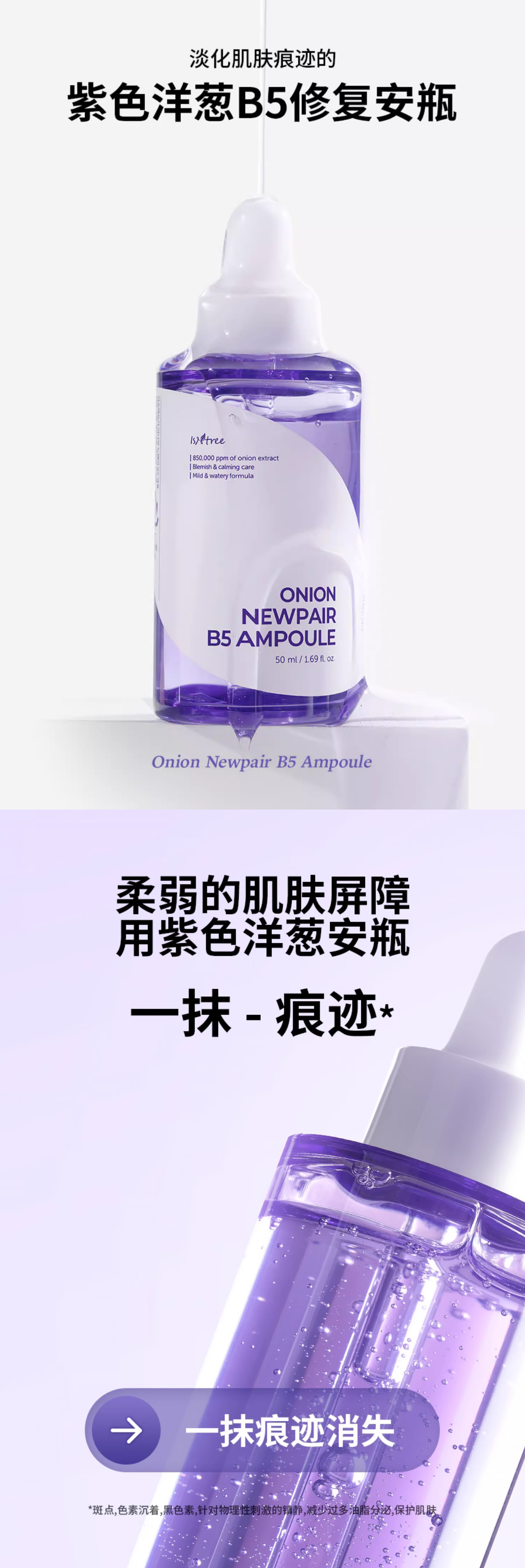 K|韩国isntree紫色洋葱B5修复安瓶50ml 提亮紧致淡化痘印修护皮肤屏障