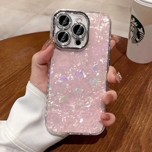 带闪粉镜头镭射郁金香花卉贝壳纹手机壳 两色选(iPhone17/16/Plus/Pro/Max)