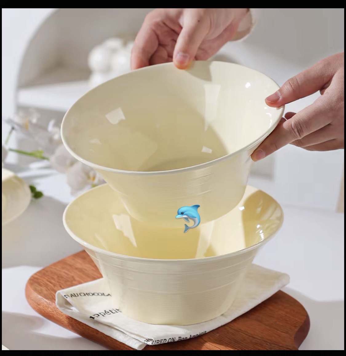 百货小铺【2碗+2勺】陶瓷拉丝汤碗➕勺 8英寸 (只限极速达区域)