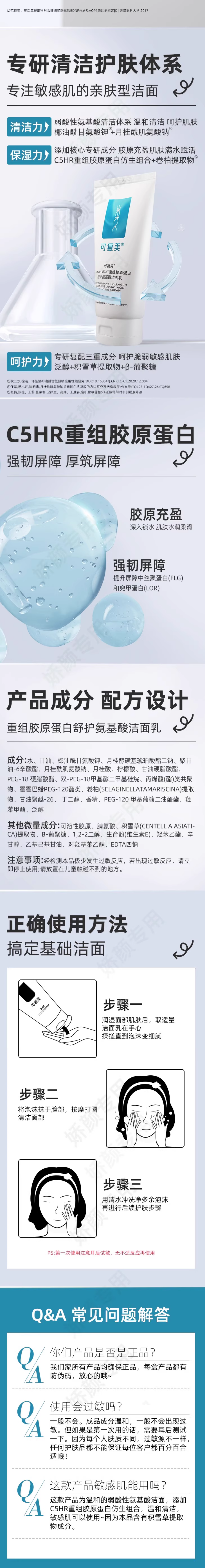 可复美重组胶原蛋白舒护氨基酸洁面乳120g/盒(3个工作日内到货)