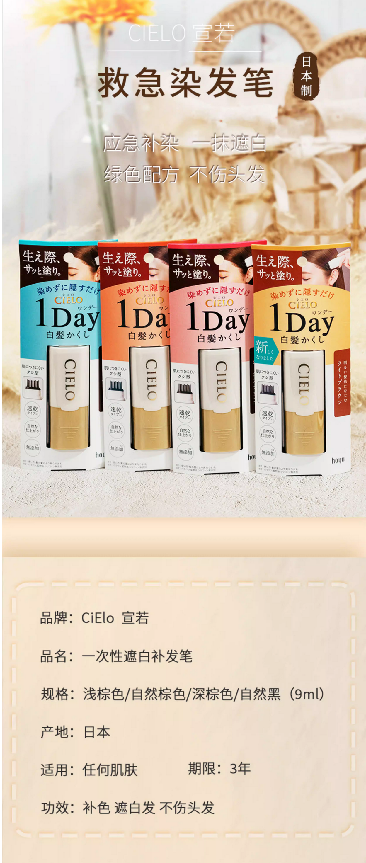 K|日本美源Cielo萱若一次性短效笔棒纯植物补色剂遮盖白发神器