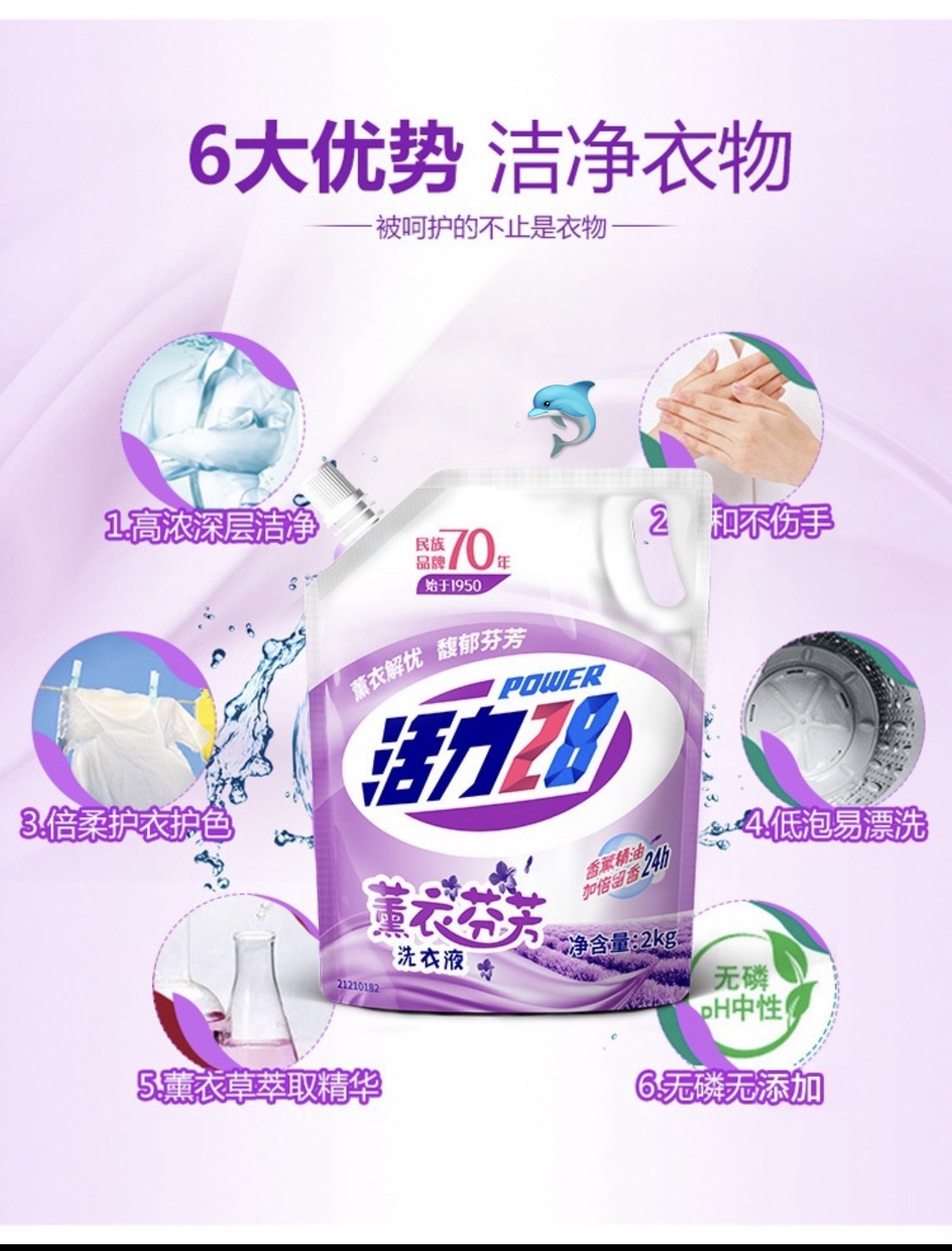 百货小铺【2袋8斤】活力28-薰衣草洗衣液 2kgx2(只限极速达区域)