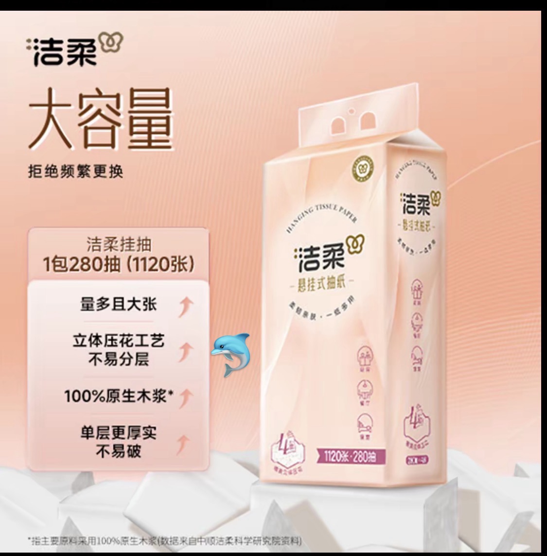 百货小铺【6提/箱】洁柔-悬挂式280抽抽纸(只限极速达区域)