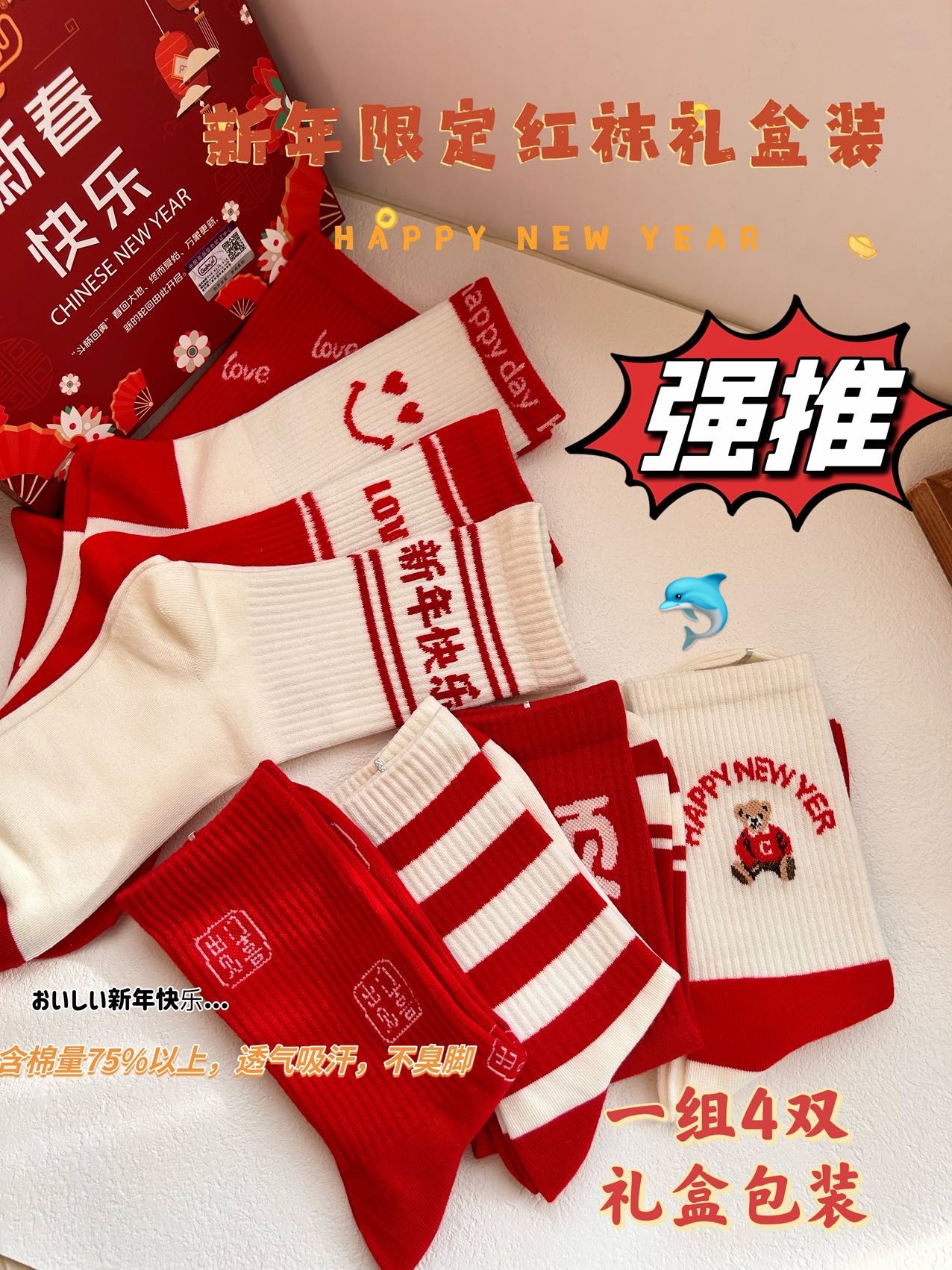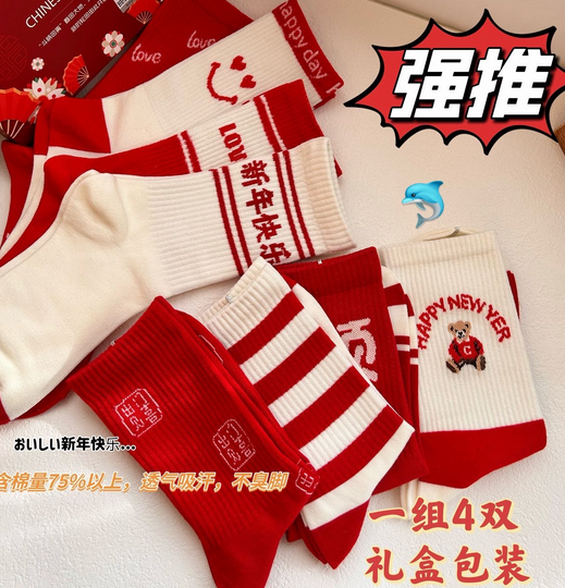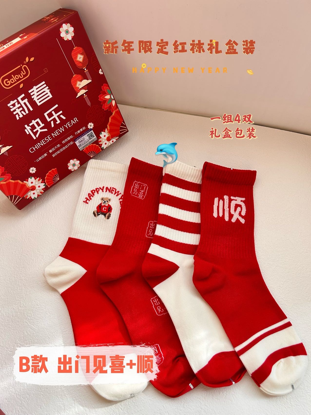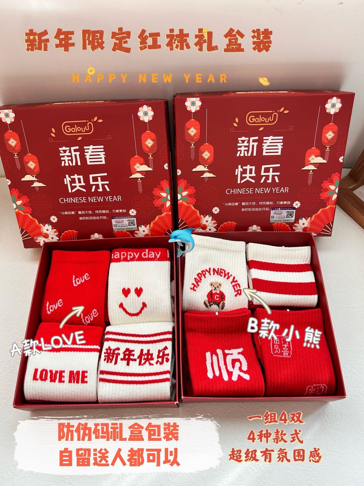 百货小铺【4双/盒】Galouu新年鸿运礼盒袜