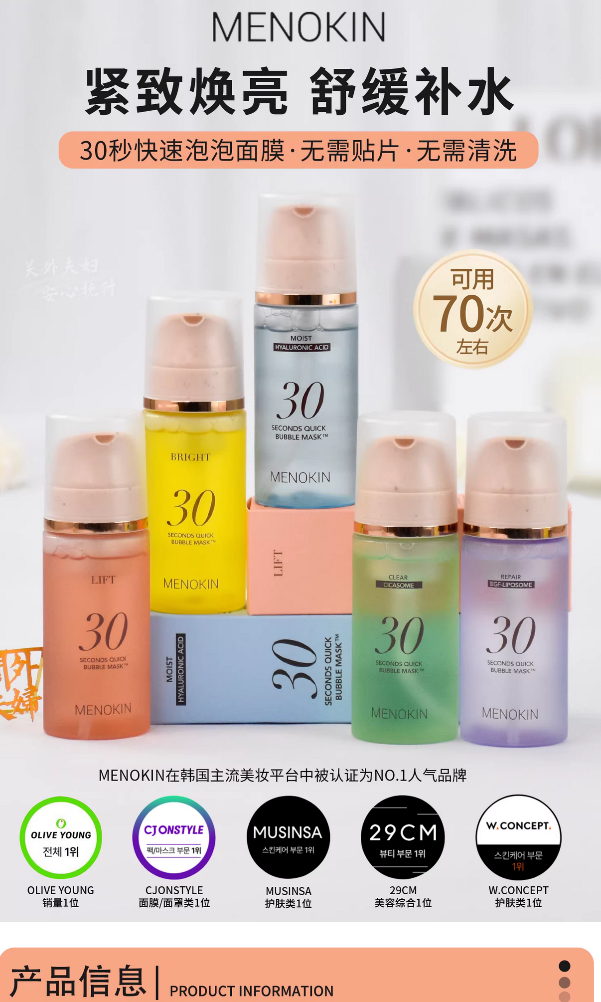 K|韩国menokin泡沫面膜30s水光提亮 95ml 多款选