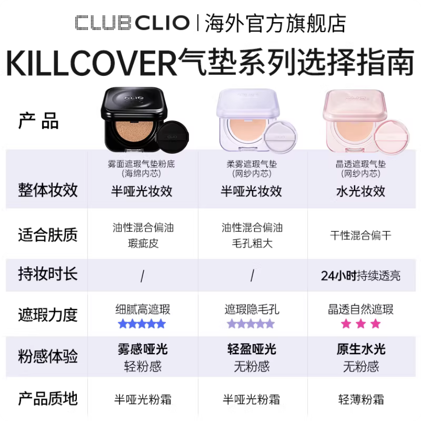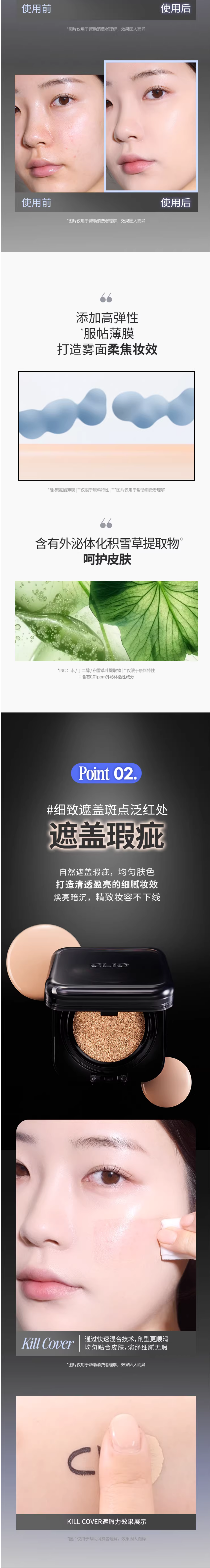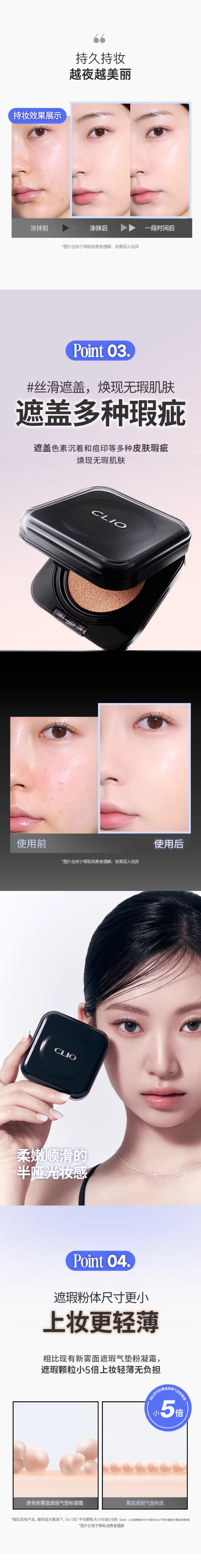 K|clio珂莱欧雾面遮瑕气垫小黑盾粉底遮瑕哑光油性