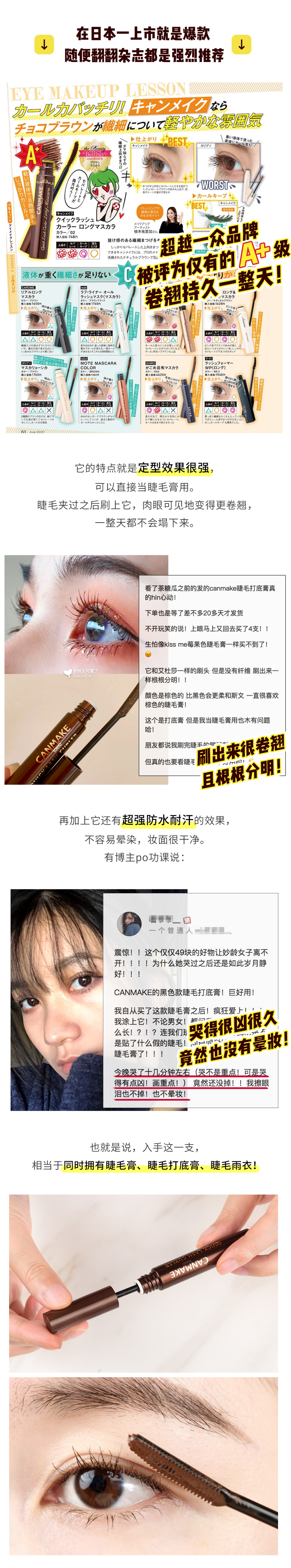 优品|日本 CANMAKE 定型防晕卷翘持久防水睫毛打底梳型刷头 两款