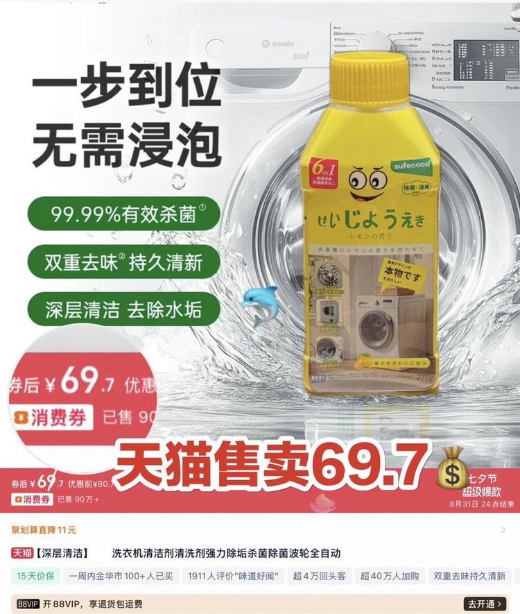 【限时秒杀】柠檬清香除菌去垢洗衣机净洗液 270g