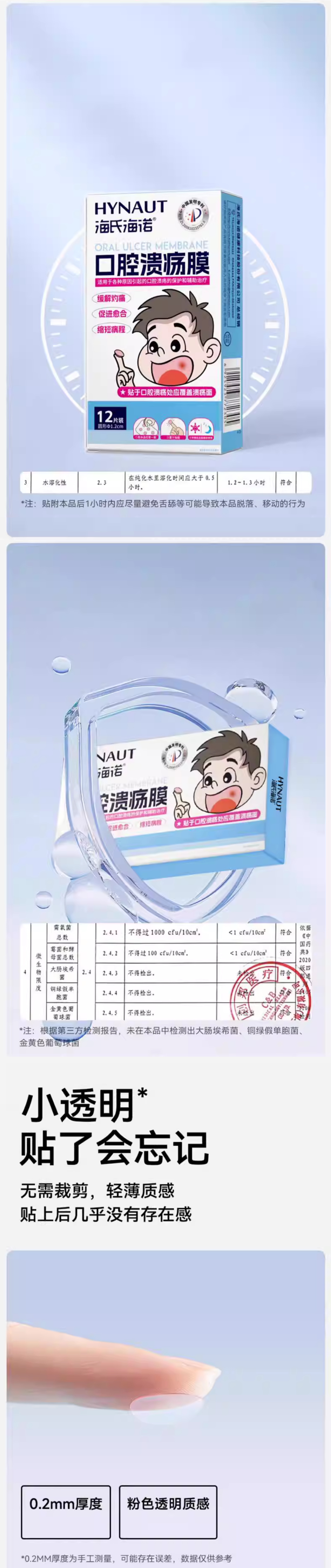 海氏海诺口腔溃疡膜 12贴/盒(3个工作日内到货)