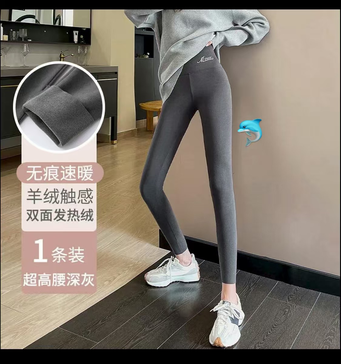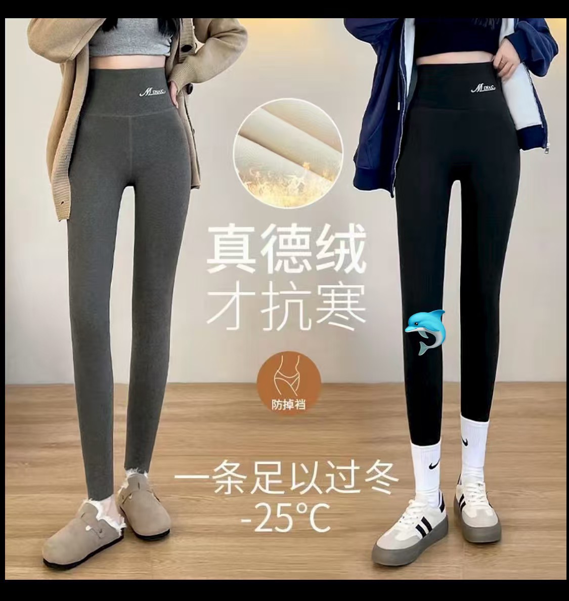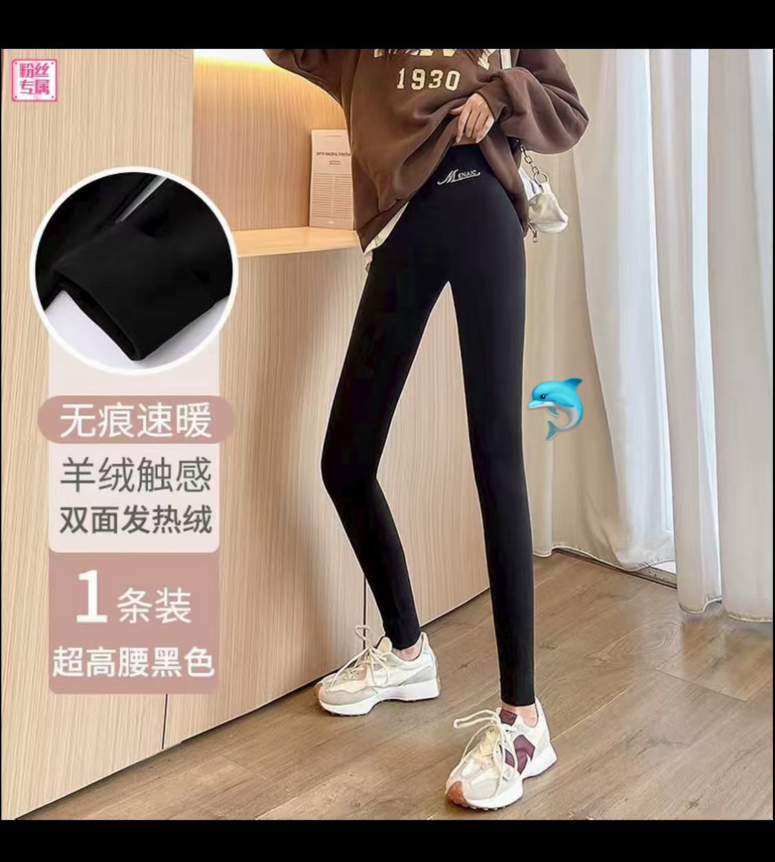 【半价秒杀】高腰加绒打底裤 黑色M(80-100斤)