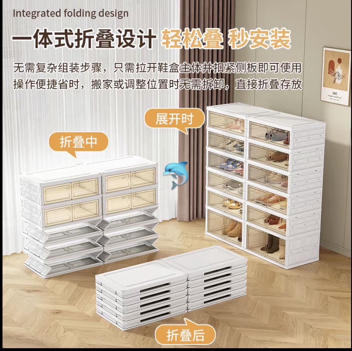 百货小铺【2个入】多用途免安装加厚防尘透明折叠鞋架 15×30×60cm(只限极速达区域)