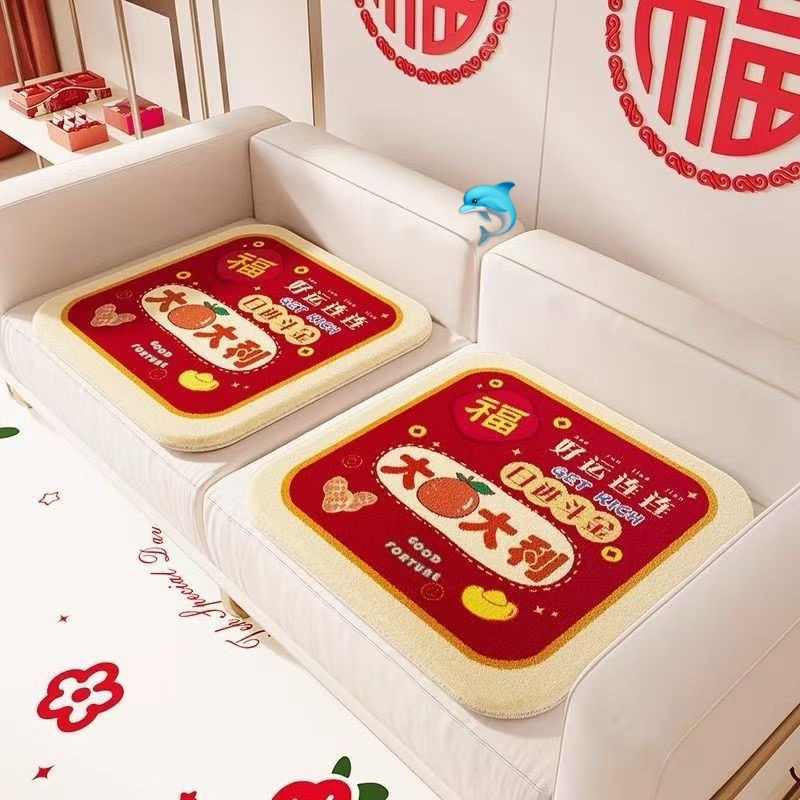 百货小铺【2个入】2026 新款红色毛绒坐垫 50*50cm(只限极速达区域)