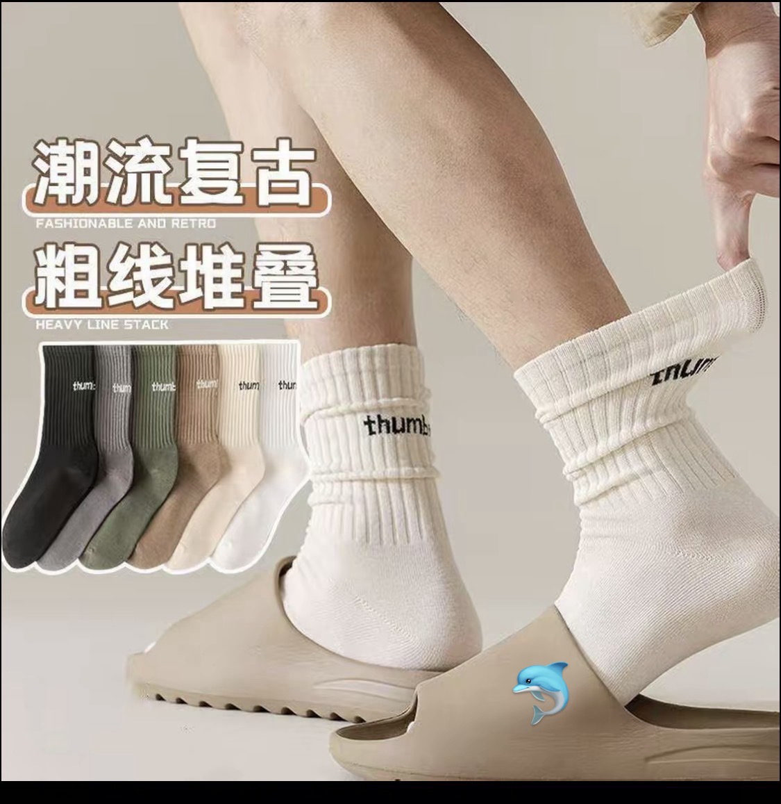 百货小铺【10双入】秋天百搭耐磨粗线中筒袜子